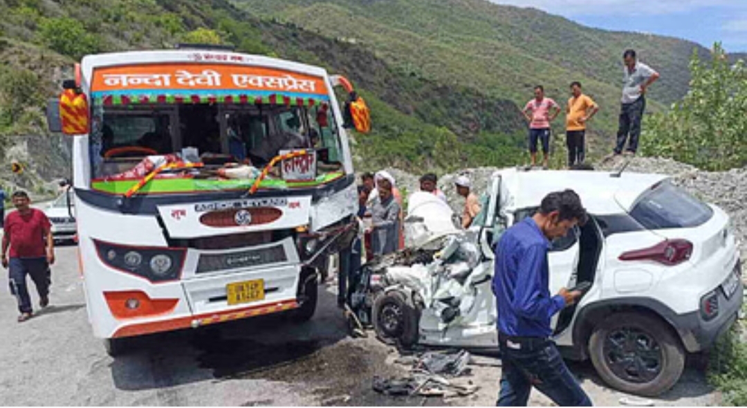 रुद्रप्रयाग से ऋषिकेश जा रही बस और ऋषिकेश से बदरीनाथ की ओर जा रही कार की म्यूलगांव के पास टक्कर हो गई।